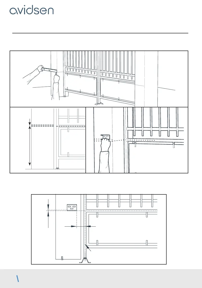 • Place the mounting brackets against the posts, 14mm above the rigid part of the gate where the ends of