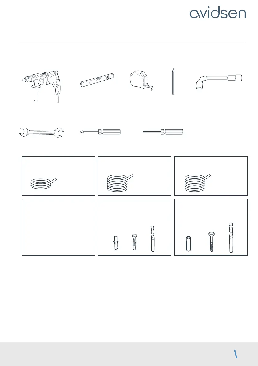 The tools and screws required for the installation must be in good condition and compliant with applicable