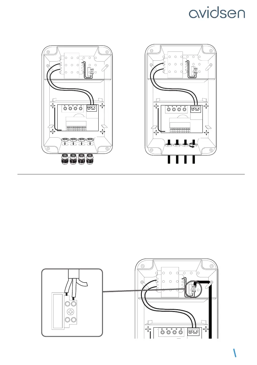 • Sluit de voedingskabels aan en controleer of ze goed op hun plek blijven in de aansluitklem.