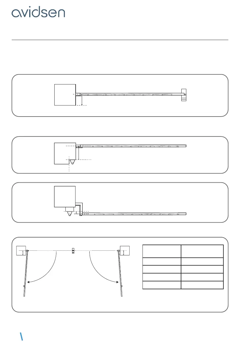 L’angolo di apertura può essere diverso per ogni battente, ma non deve mai essere inferiore a 40°.