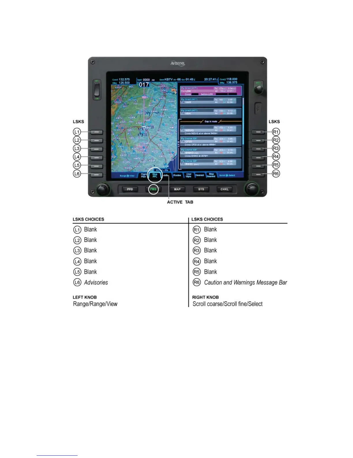 of active LSKs on this page. Switch back to the Map+ or Map tab
