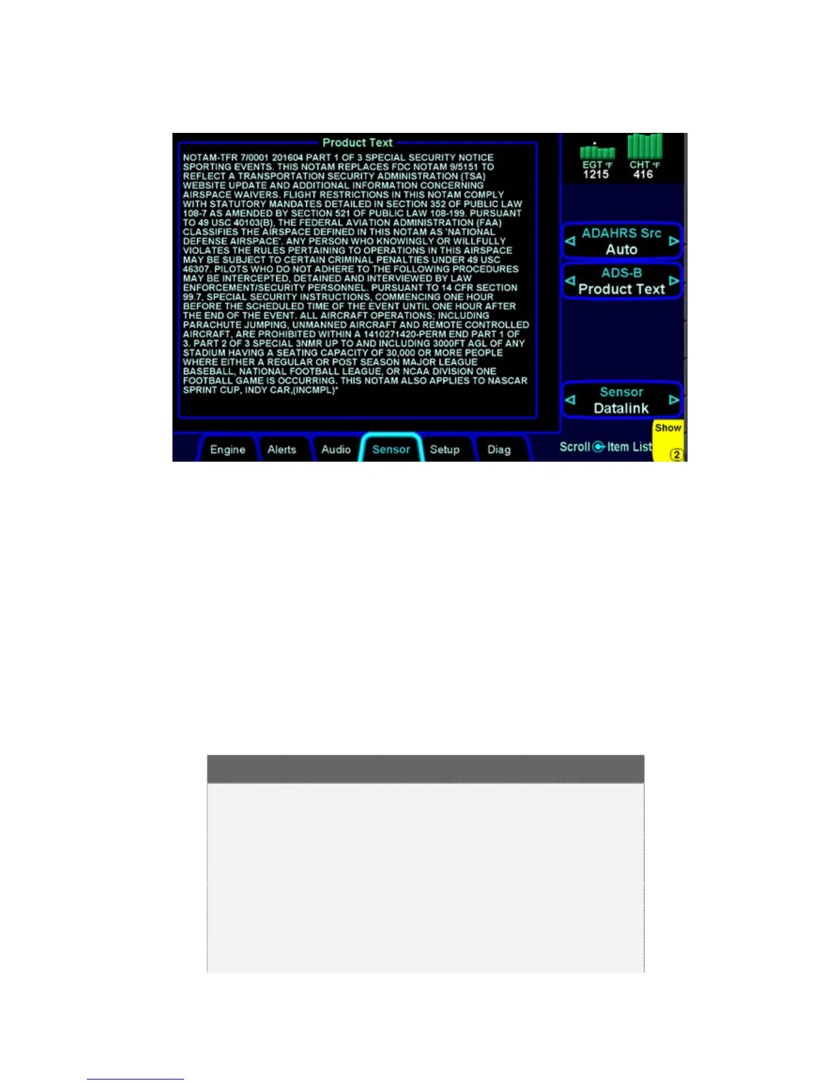 radar (NOWrad or WxRad) age. If a Datalink Icing product was