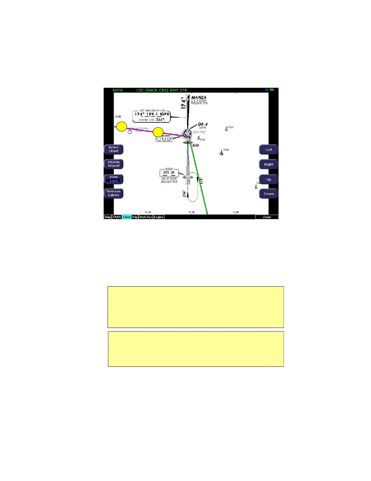 the current non-offset leg will be displayed in white. For Garmin 400W/