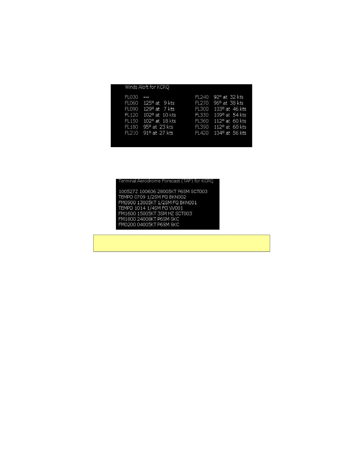 Note: Winds Aloft and TAFs are only available with certain broadcast