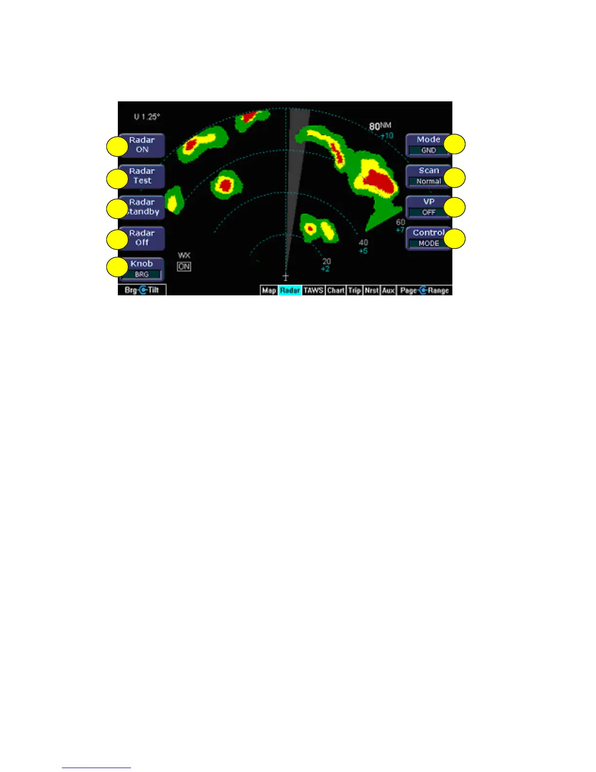 2) Radar Test - Initiates a radar self-test function that is monitored