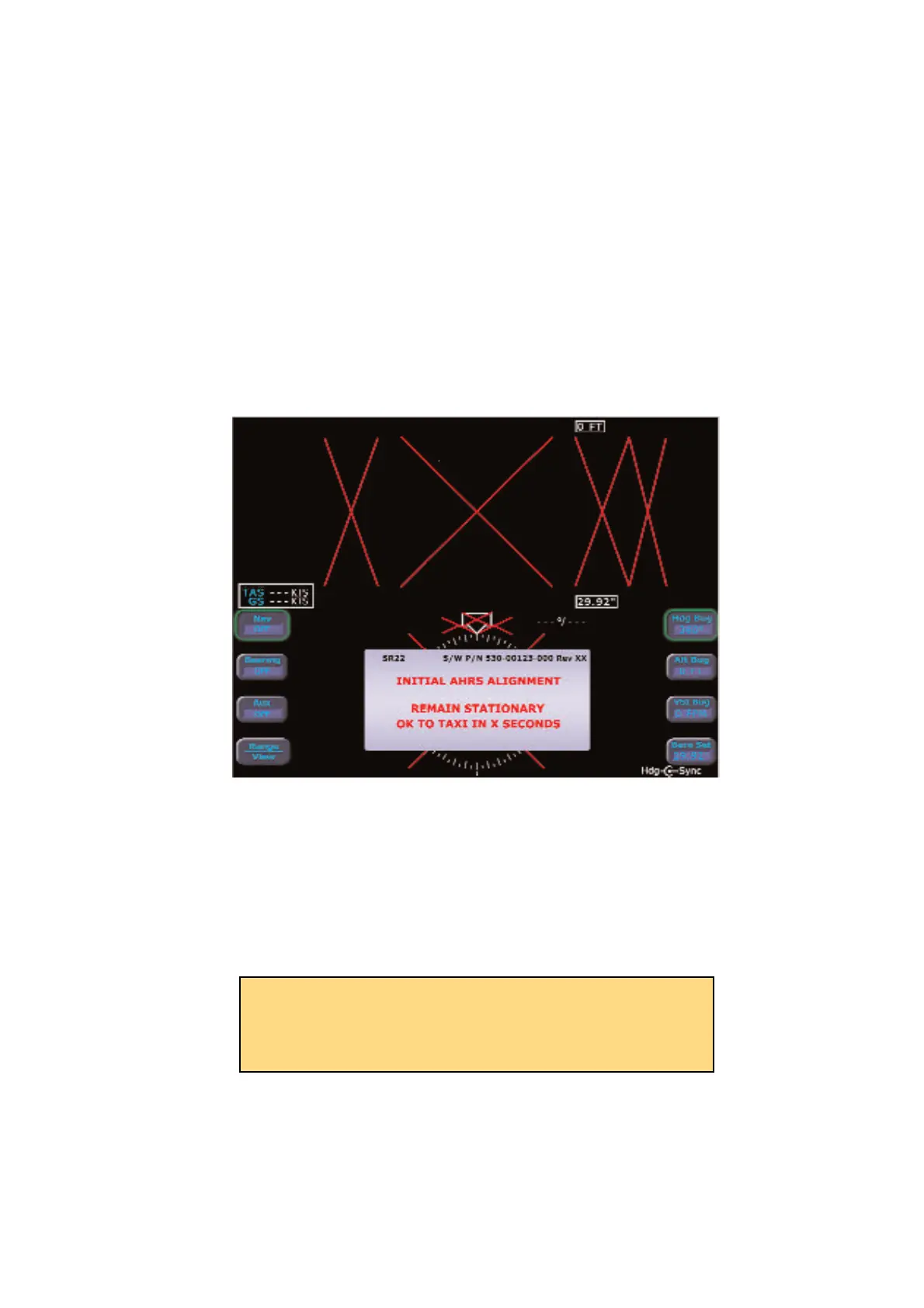 The PFD presents the above Initialization Display immediately after