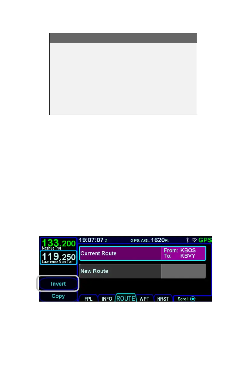 "Current Route" row and pressing the "Invert" LSK. Pressing the
