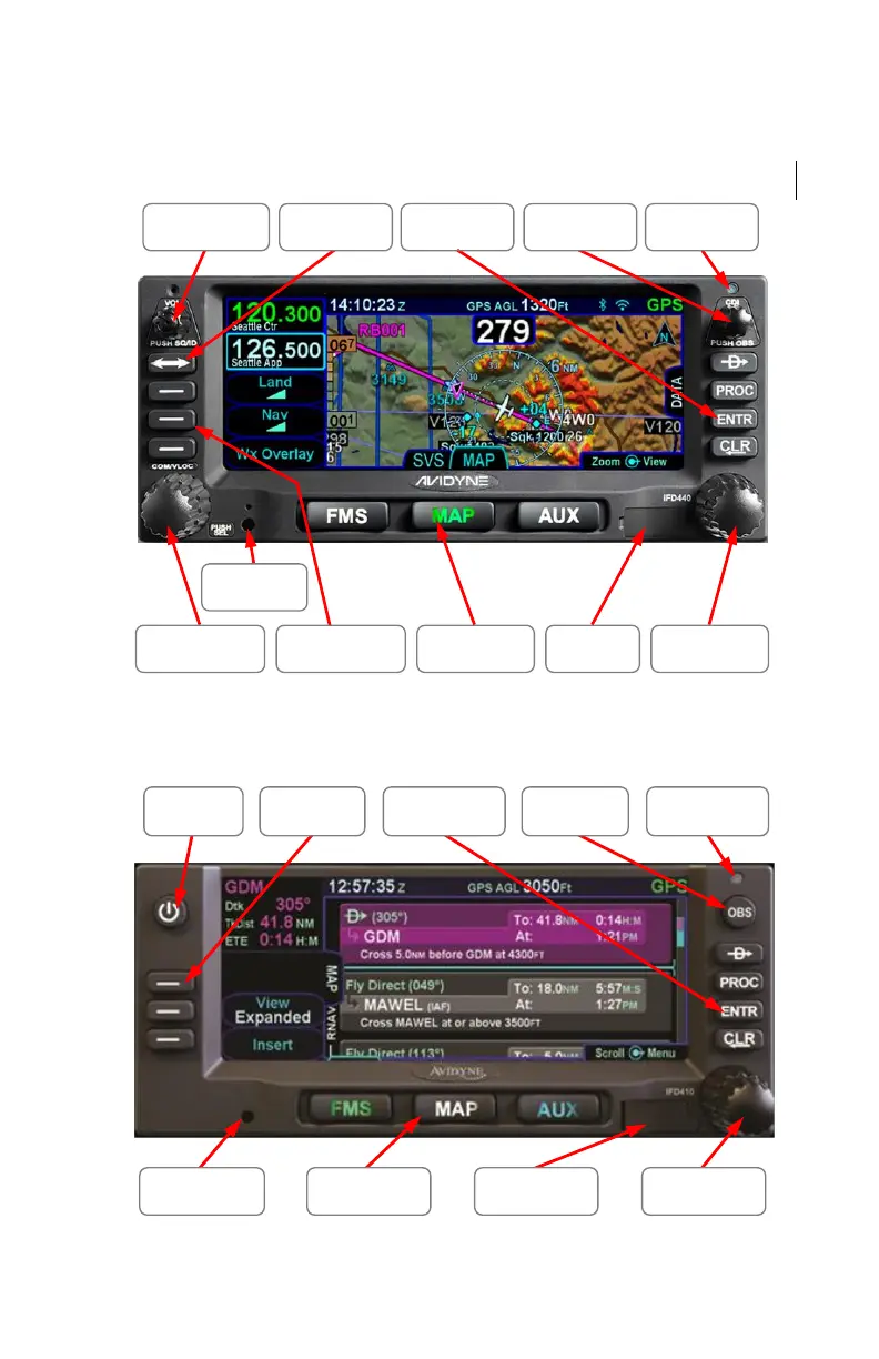 Avidyne IFD440 - General Ifd Operations; IFD440 Bezel Layout; IFD410 Bezel Layout