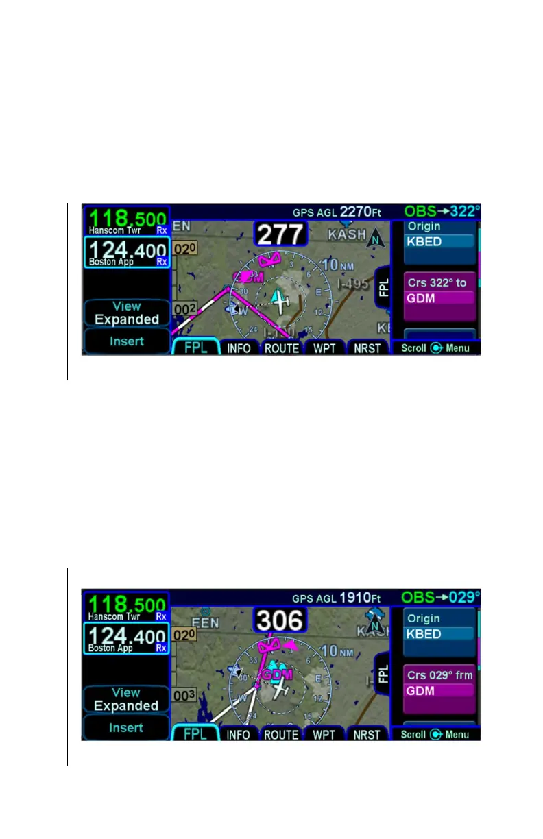 OBS course and the aircraft course to the fix is less than 90°), the