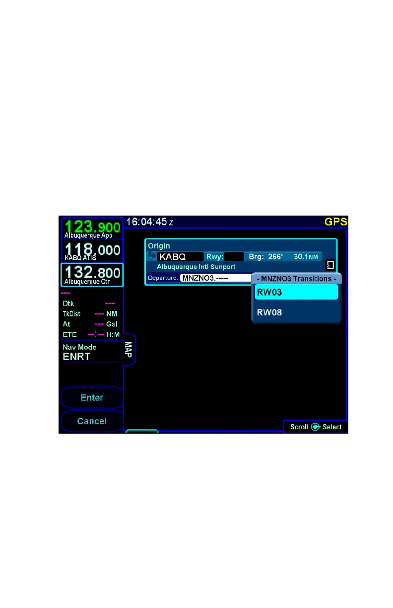 selected. There are cases where a runway transition applies to