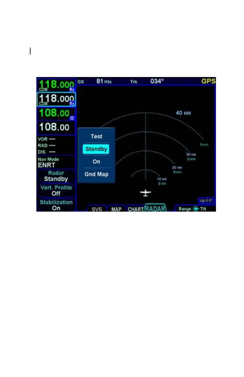 labeled “Radar”. Pressing the LSK or touching the label will generate