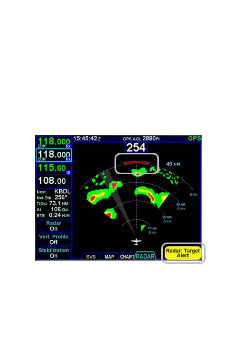 NM. When a Target Alert is issued, two red arcs, separated by a