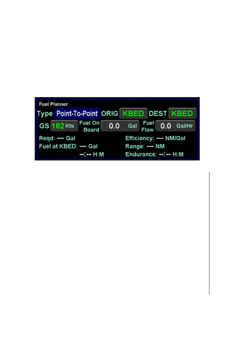 to Point), destination, ground speed, fuel on board, and fuel flow,