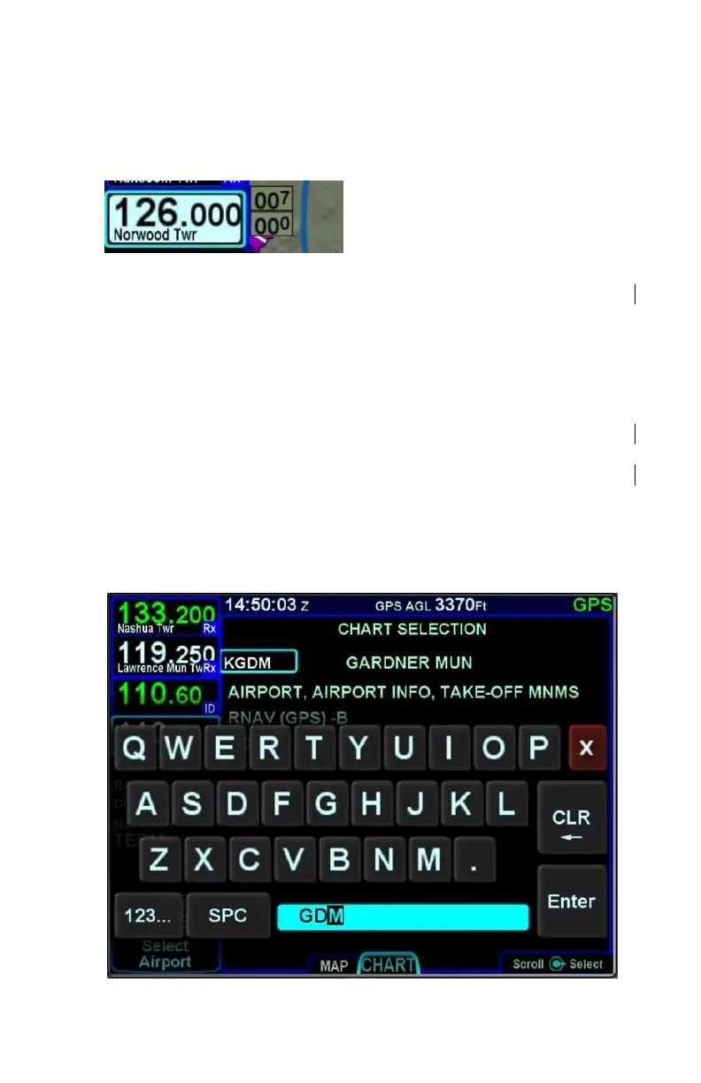 of the VOR (e.g. “GDM” for the Gardner VOR). Touch the nav