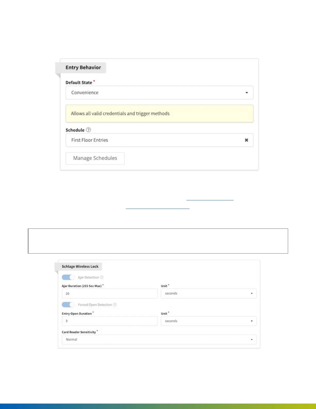 Note:EntriesconfiguredwithAllegionSchlageNDEBandLEBwirelesslocksonlysupportUnlocked,No