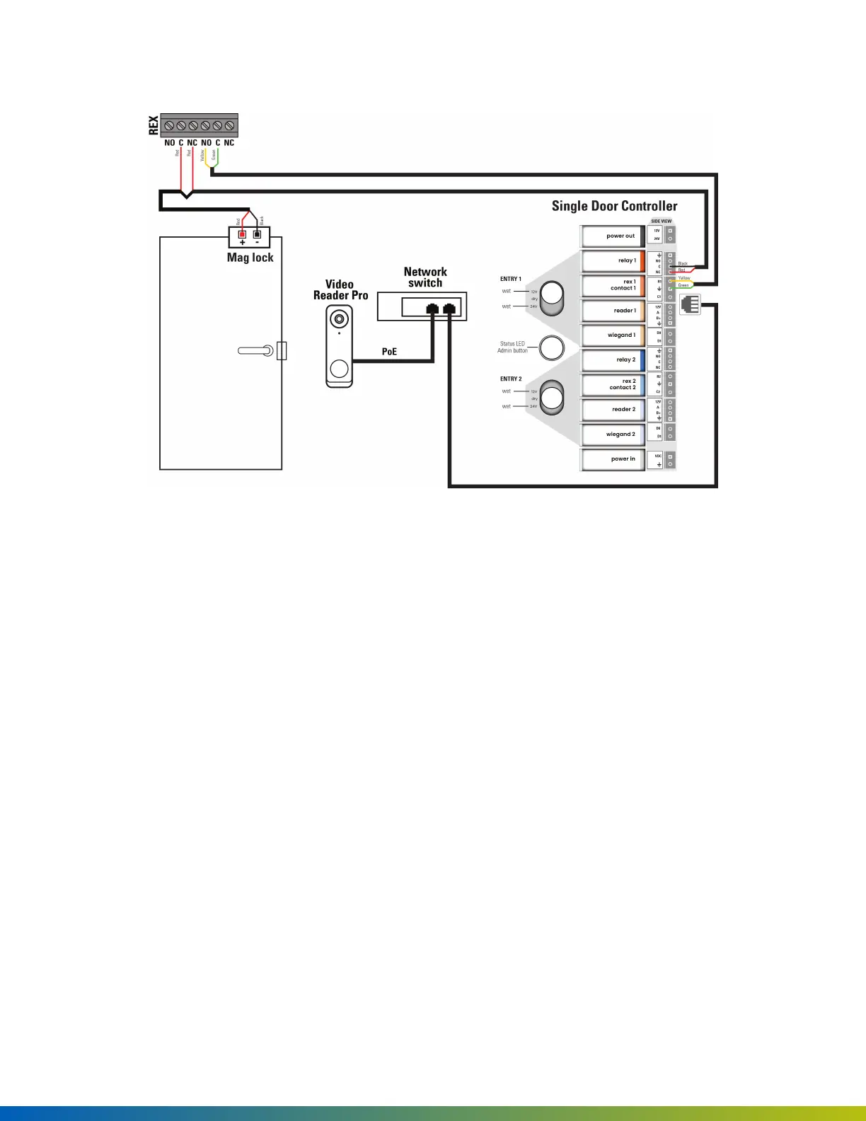Example: Remote REX on Single Door Controller with Video Reader Pro or Video Intercom Reader Pro