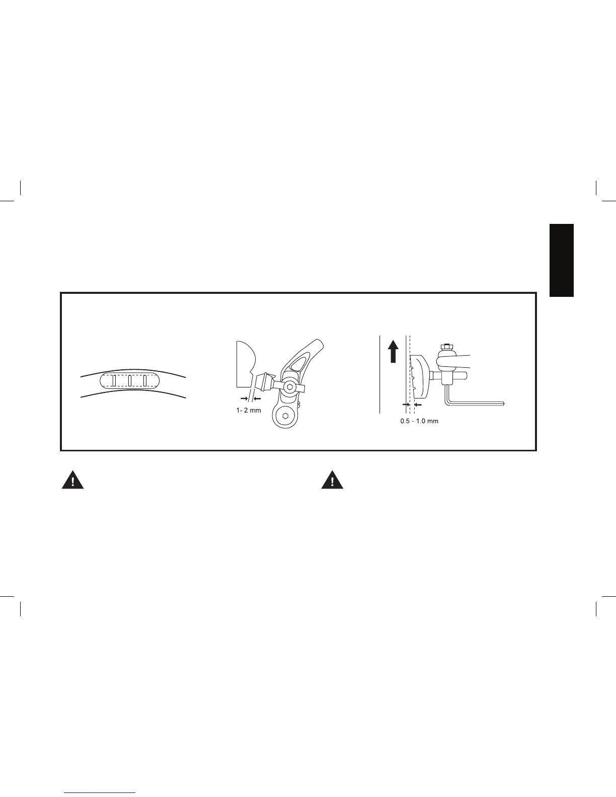 rims to stop the bike. The brake pads should be adjusted so they are 1 mm to 2 mm away from the rim when