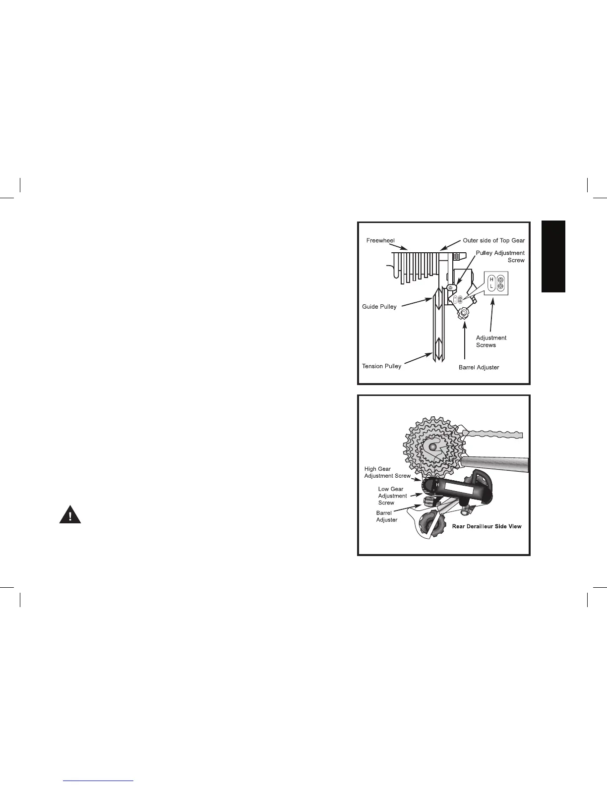 Some derailleurs may have an adjusting barrel (see bottom drawing).