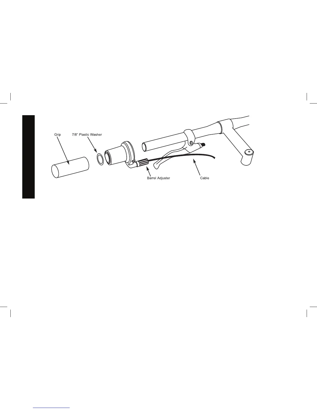 2. Rotate assembly until cable exits beneath brake lever with adequate clearance for brake lever movement.