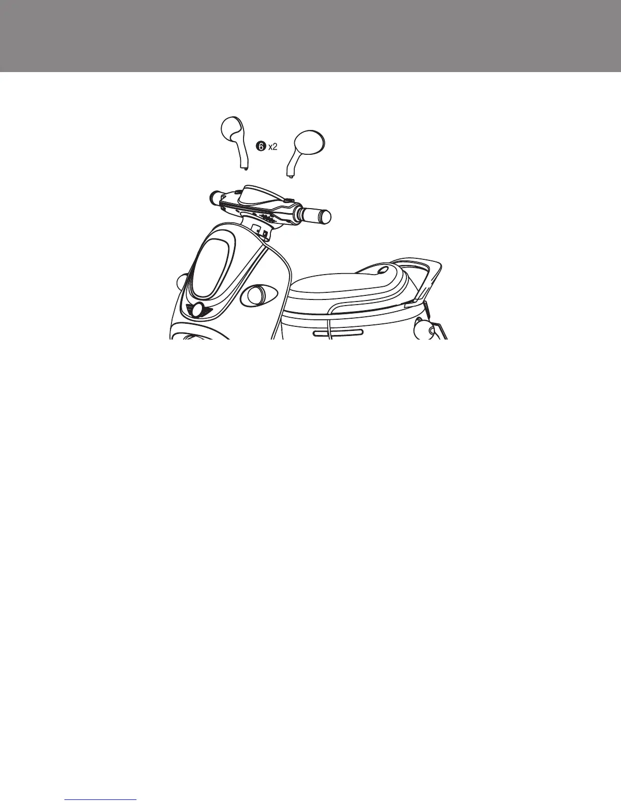 1. Attach the left and right mirrors (6) to the handle bars (7). A click ensures