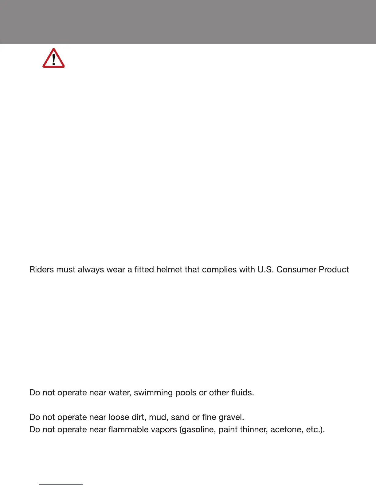 NEVER use on roadways, near cars, on or near steep inclines or steps, swimming