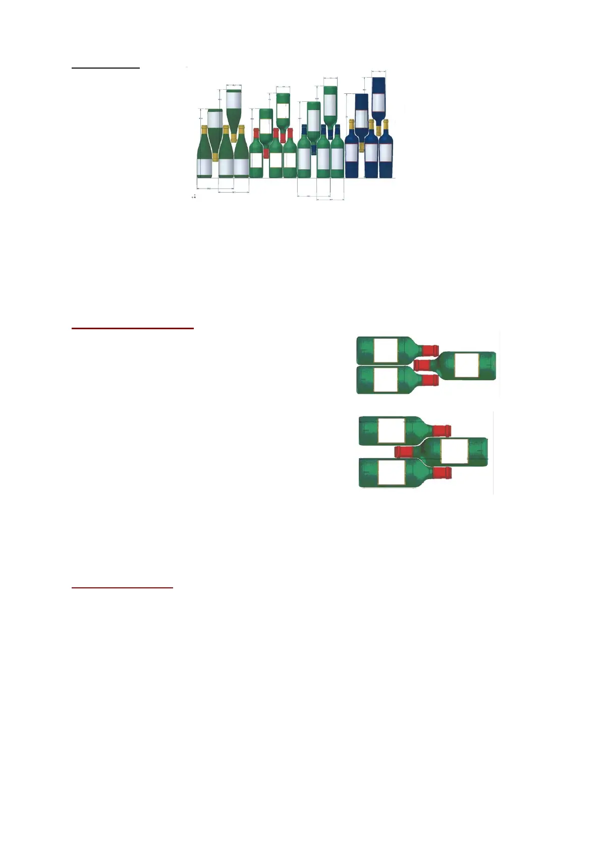 Hier sehen Sie vier Sorten von 75 cl Flaschen, Burgunder und Bordeaux, mit unterschiedlicher Größe.