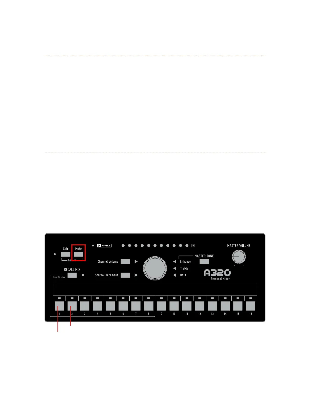 On power up, holding Mute and ChANNel 1 sets the A320 to 16-channel mode; holding Mute and ChANNel 2 sets