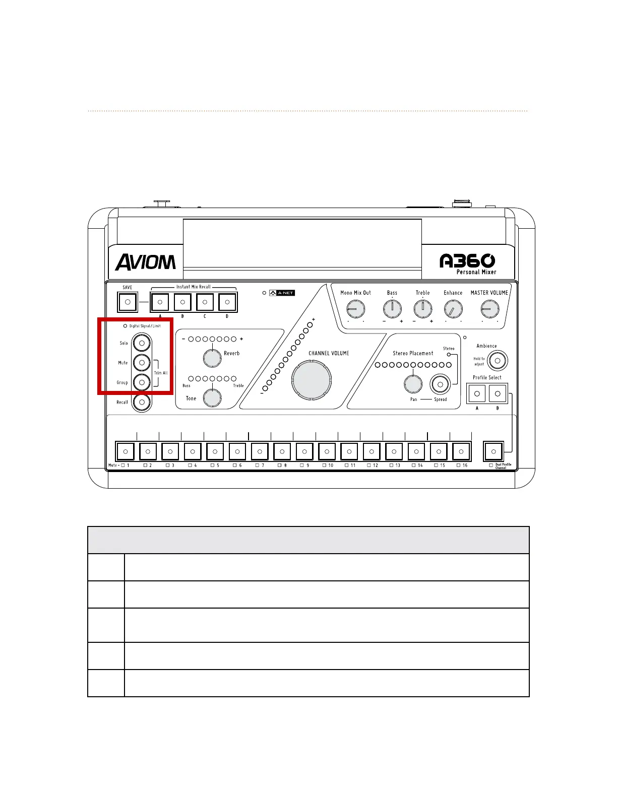 The Mute, Solo, Group, and the Trim All functions are available in this section, along with the