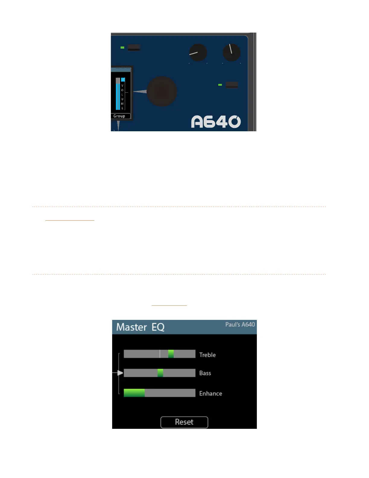 on the rear panel of the A640. Press the MaSteR eQ button to access its settings.