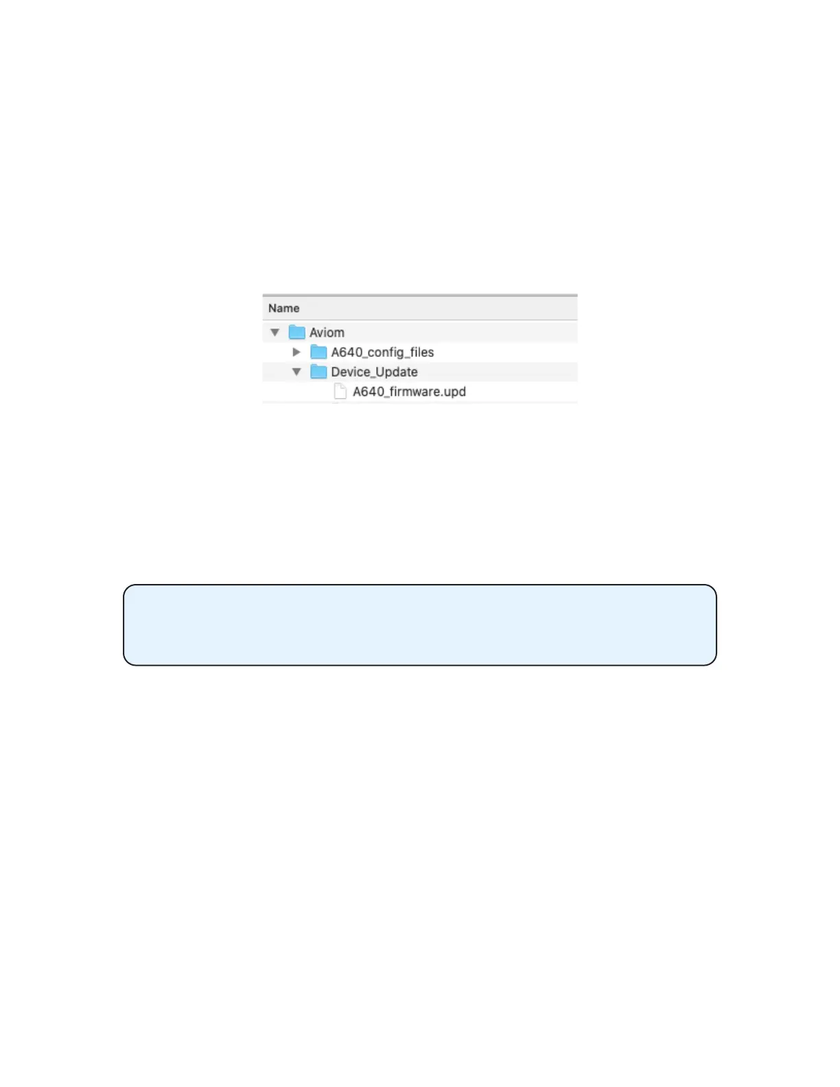 Place all rmware les into the Device_Update folder. The A640 will load the appropriate rmware le