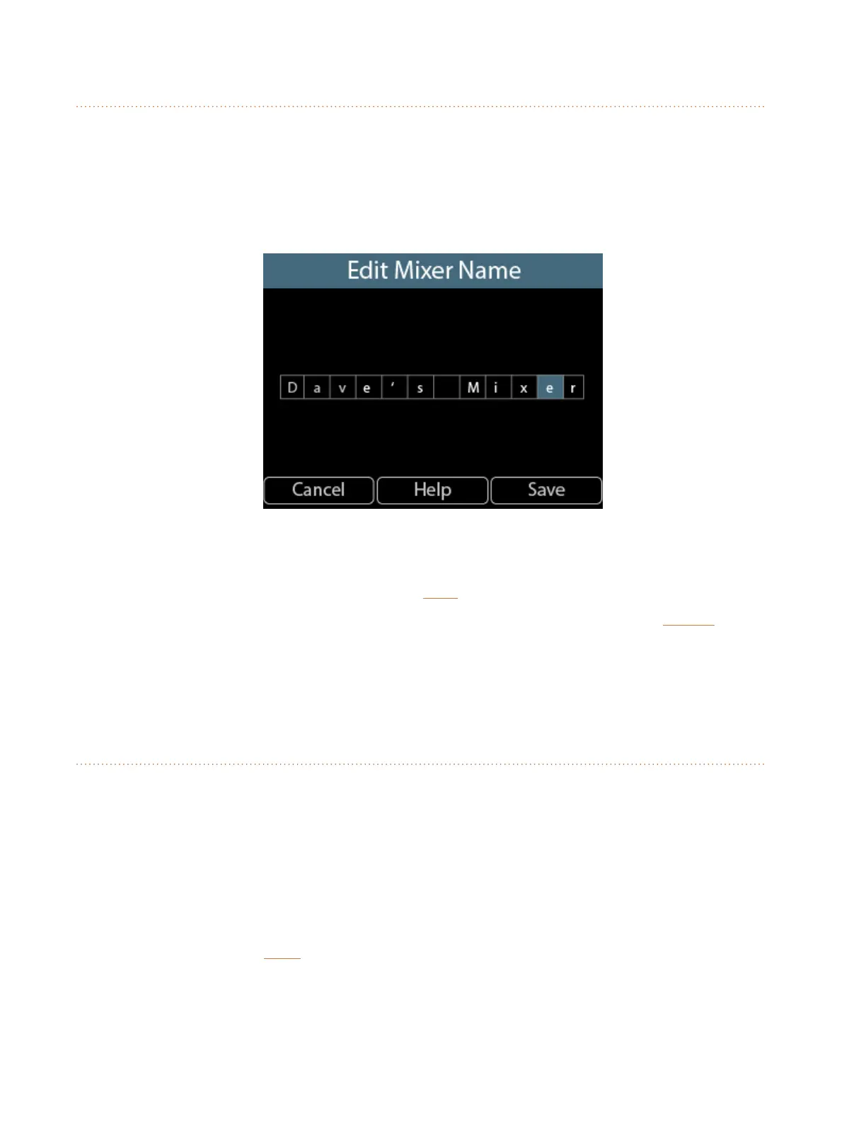 To exit the name editing elds without changing the current mixer name, press the cancel button to