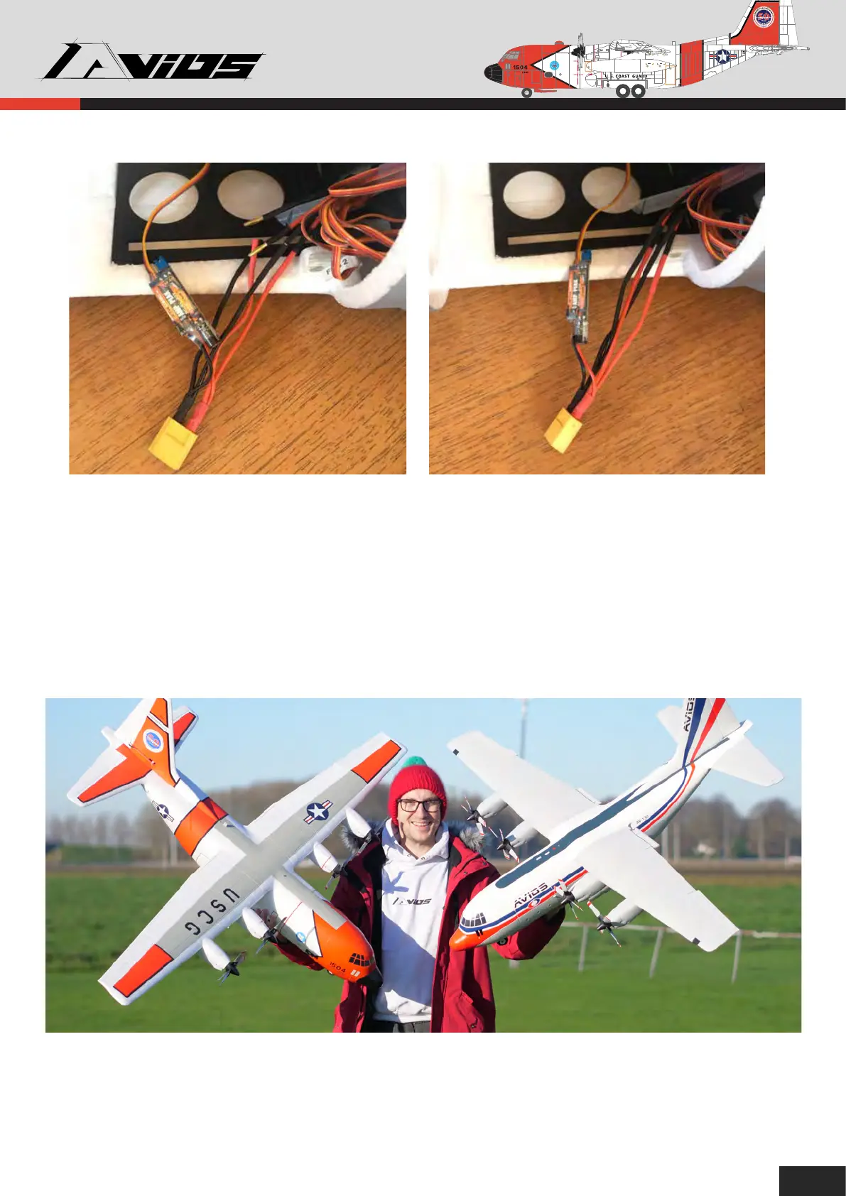 20. Connect the UBEC cables to the power cables in the fuselage as shown