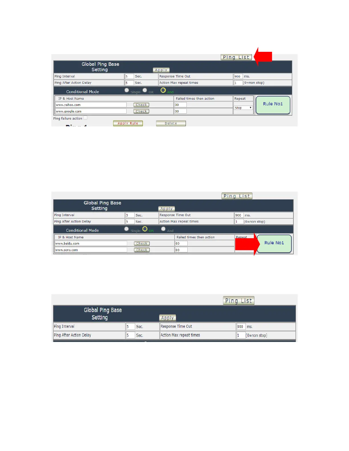 ⚫ Action Max. repeat times: Set the times to execute the Ping Failure action