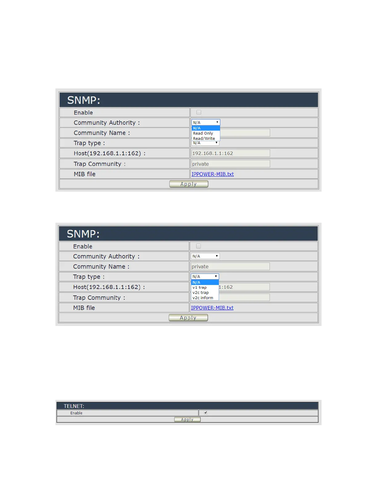 In “ Trap “ type ,user can select “ v1 trap “ , “ v2c trap “ or “ v2c inform”