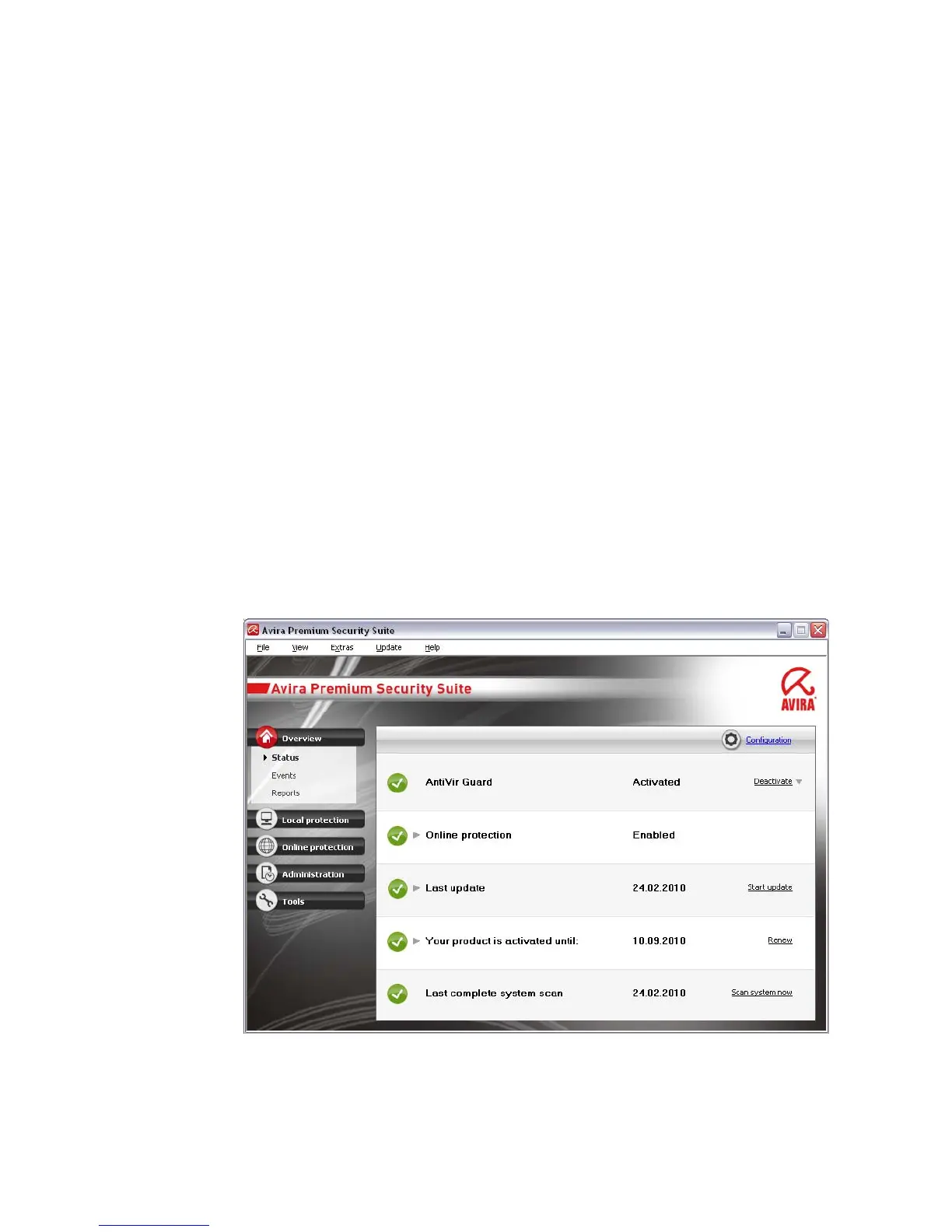 – Configuration: Configuration of Premium Security Suite