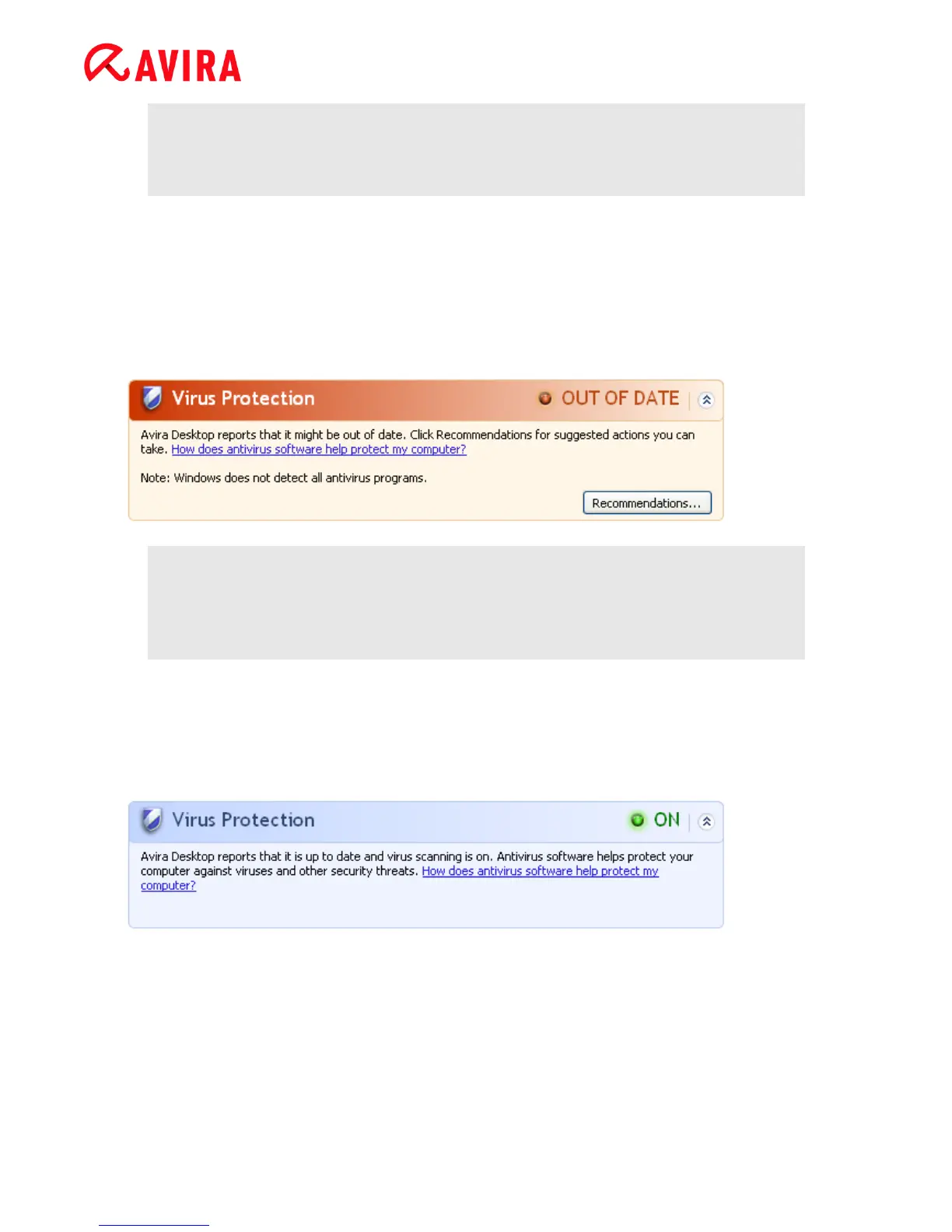In order for the Windows Security Center to recognize your Avira product as up-