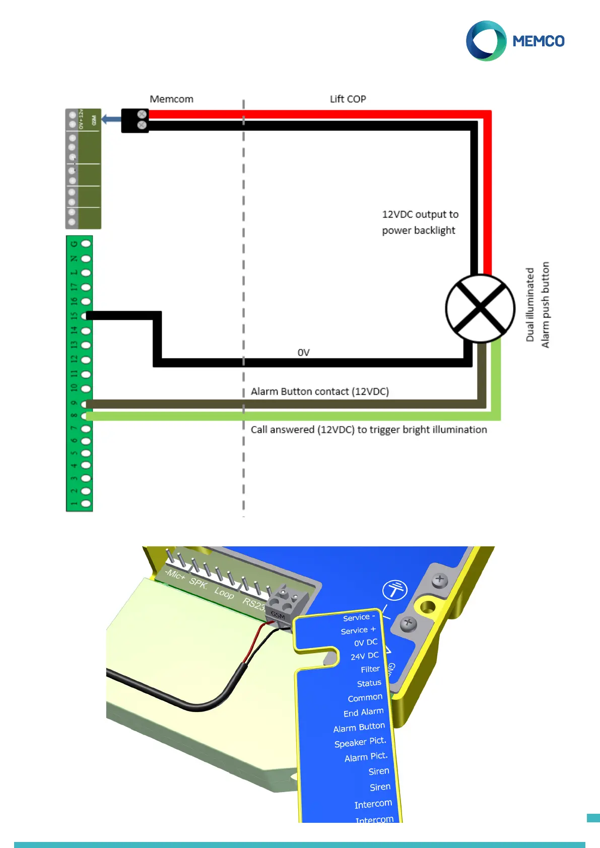 Connection to the 12VDC supply from the Memcom