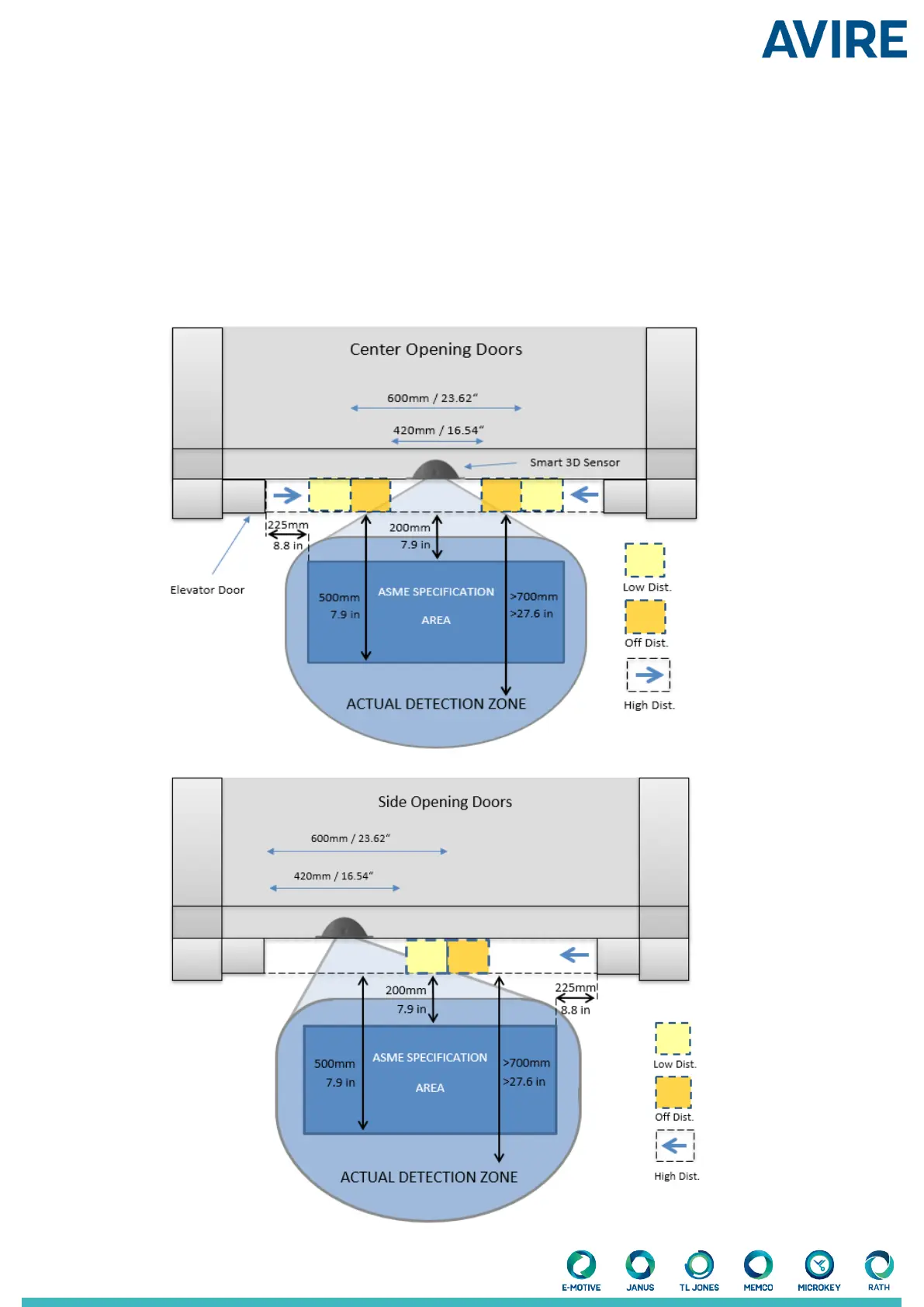 sensor is not triggered by the movement of the doors. The point at which these zones are entered can be congured.