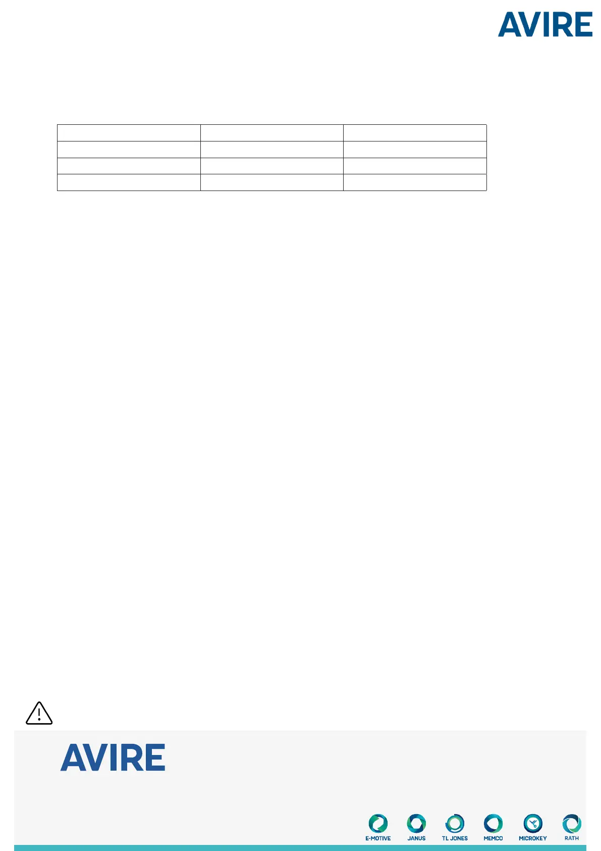 CAUTION: Changes or modications not expressly approved by Avire Ltd could void the user’s authority to operate the equipment.