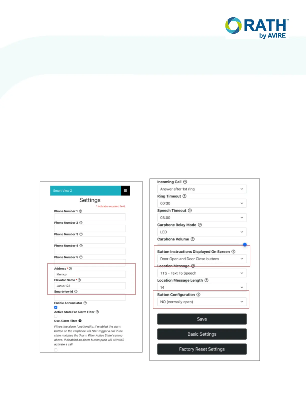 NOTE: All other settings can remain unchanged as they are only for the RATH 7200 car phone unit with built-in
