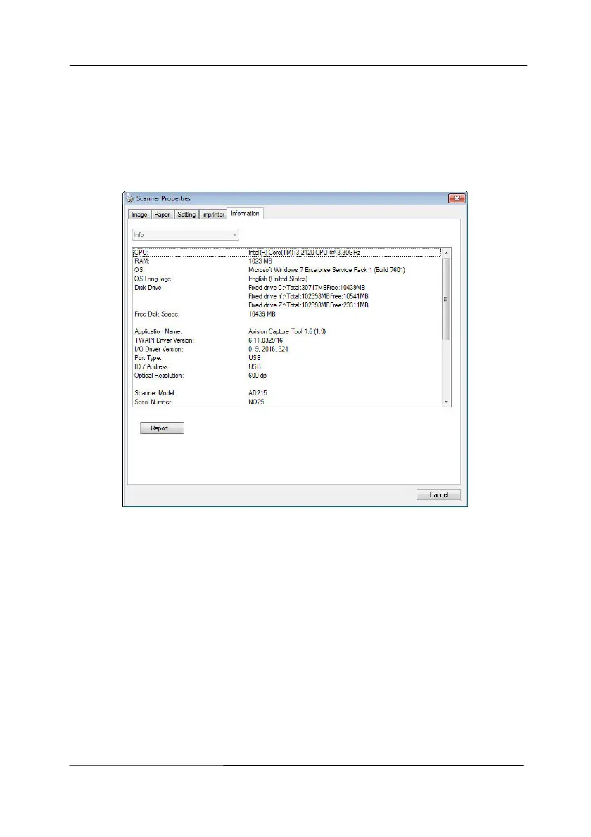 The Information tab displays the following system and scanner
