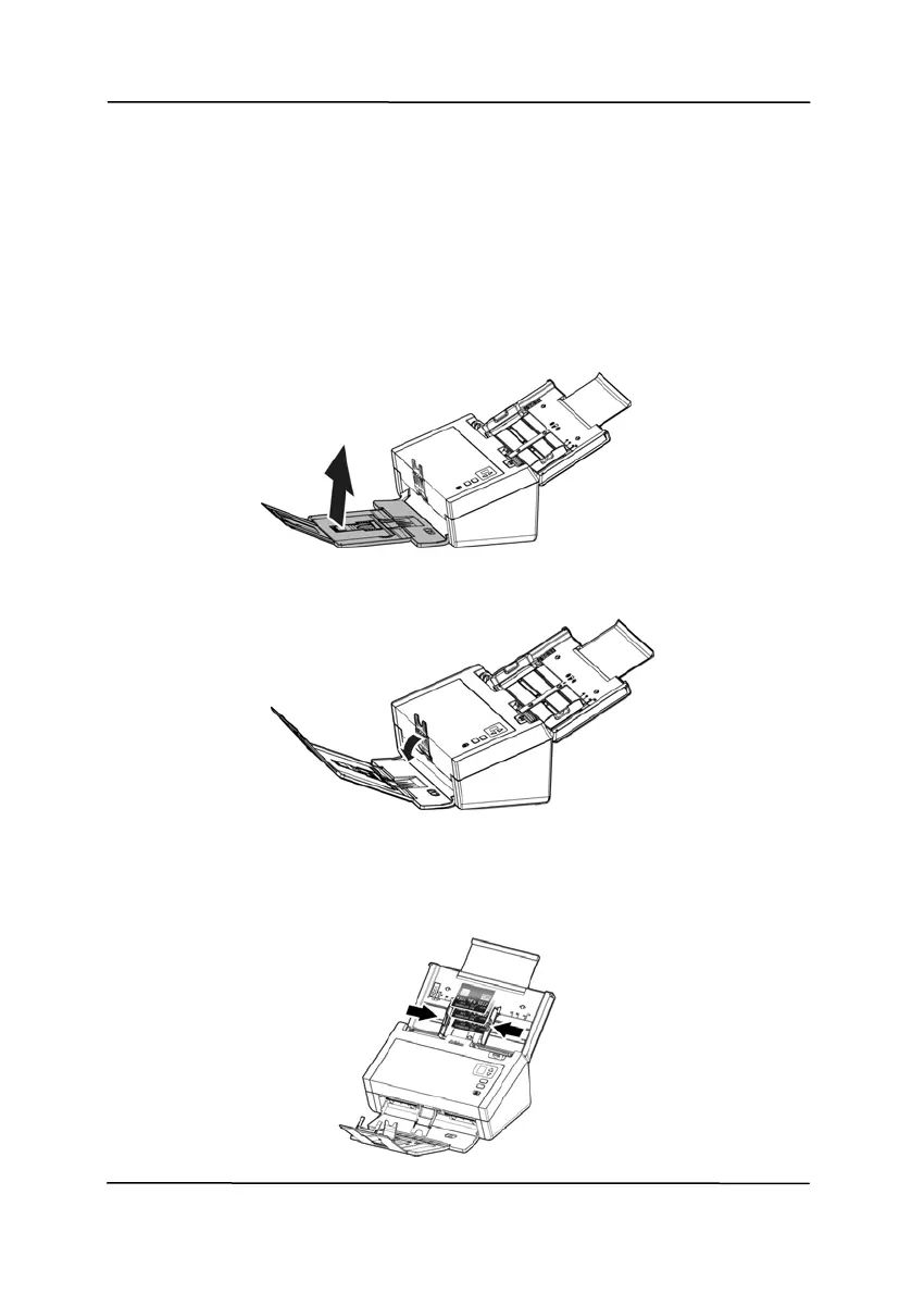 1. Lift the output tray up to make the output tray in an angled