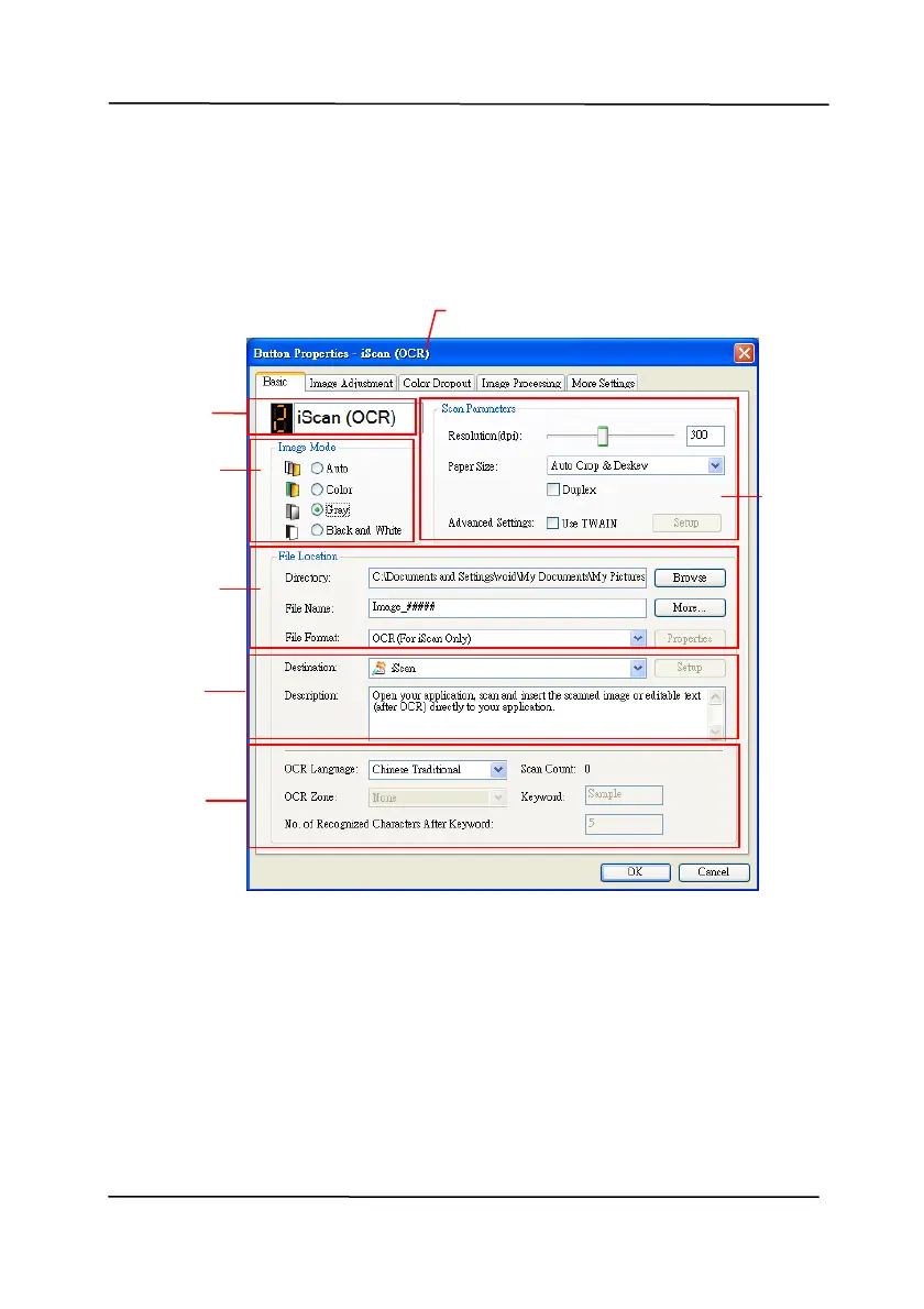 3. The Button Panel shows the first five scanning buttons.
