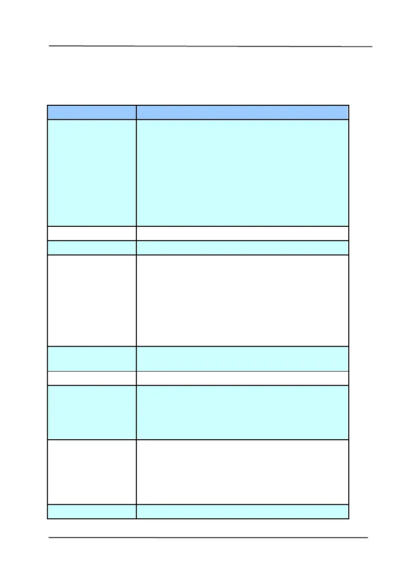 The following table shows the default settings: