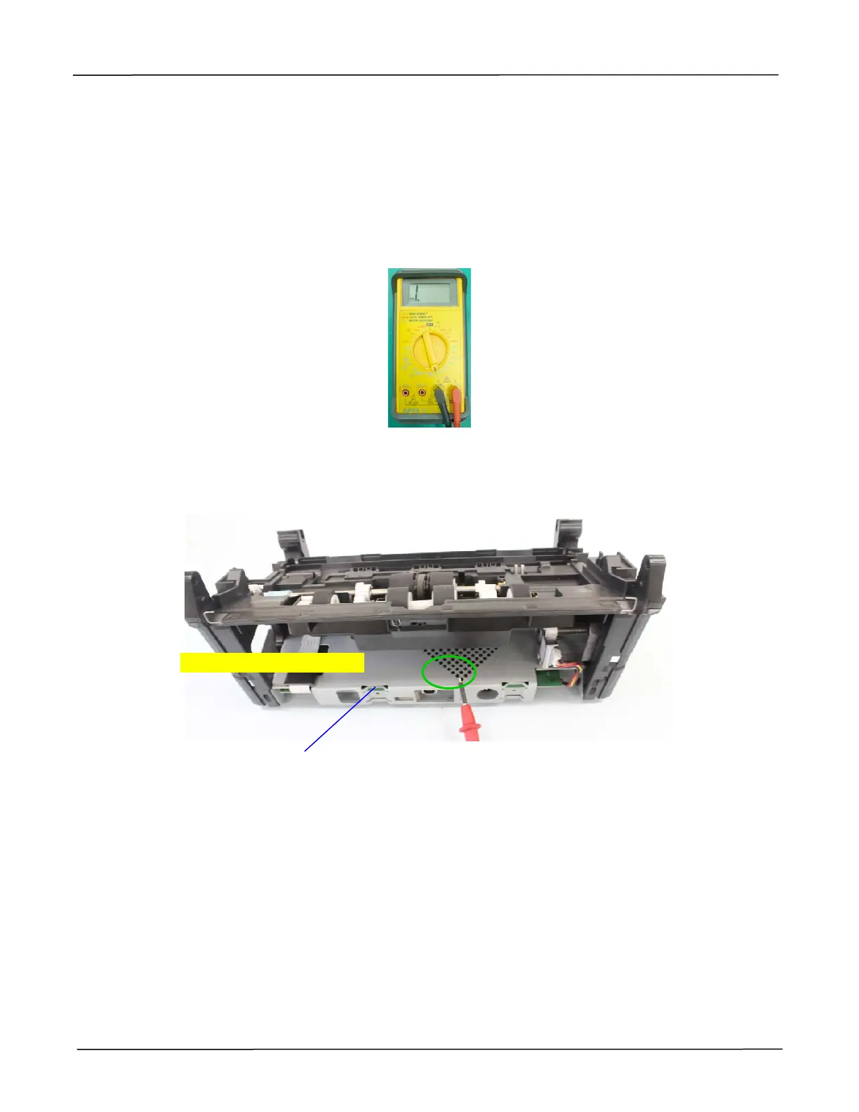 and the negative (black) one to the ADF rollers or the metal part on the roller cover as shown.