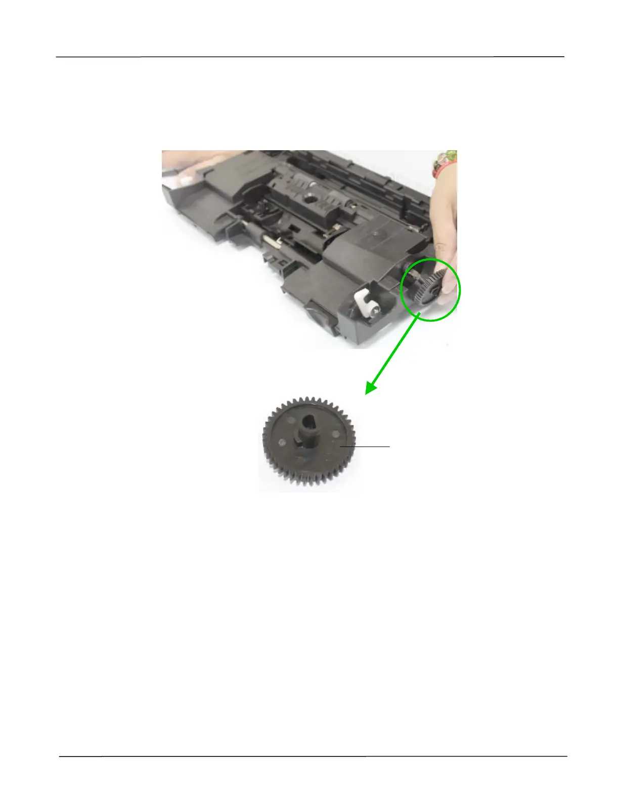 2. Press the hook inwardly, and remove the gear from the upper base, as shown below: