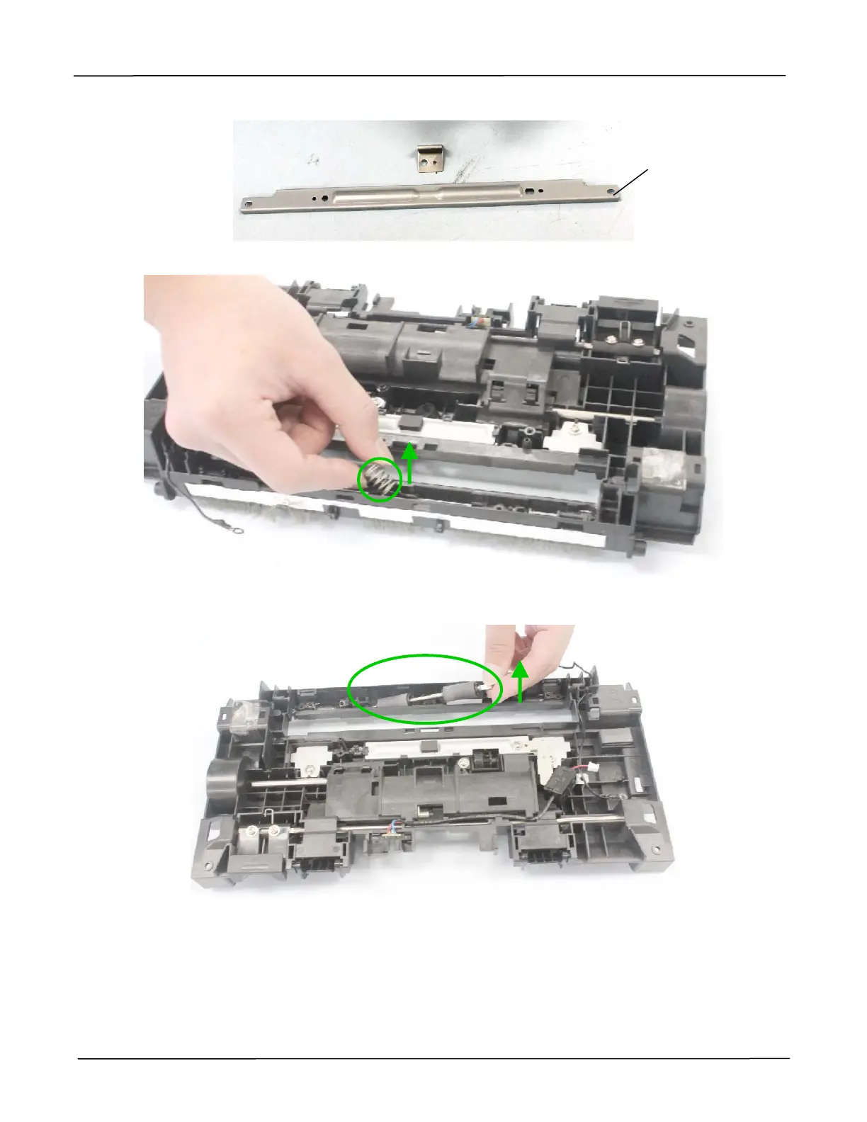 5. Remove the 3 idle rollers from the slot in the upper base, as indicated below: