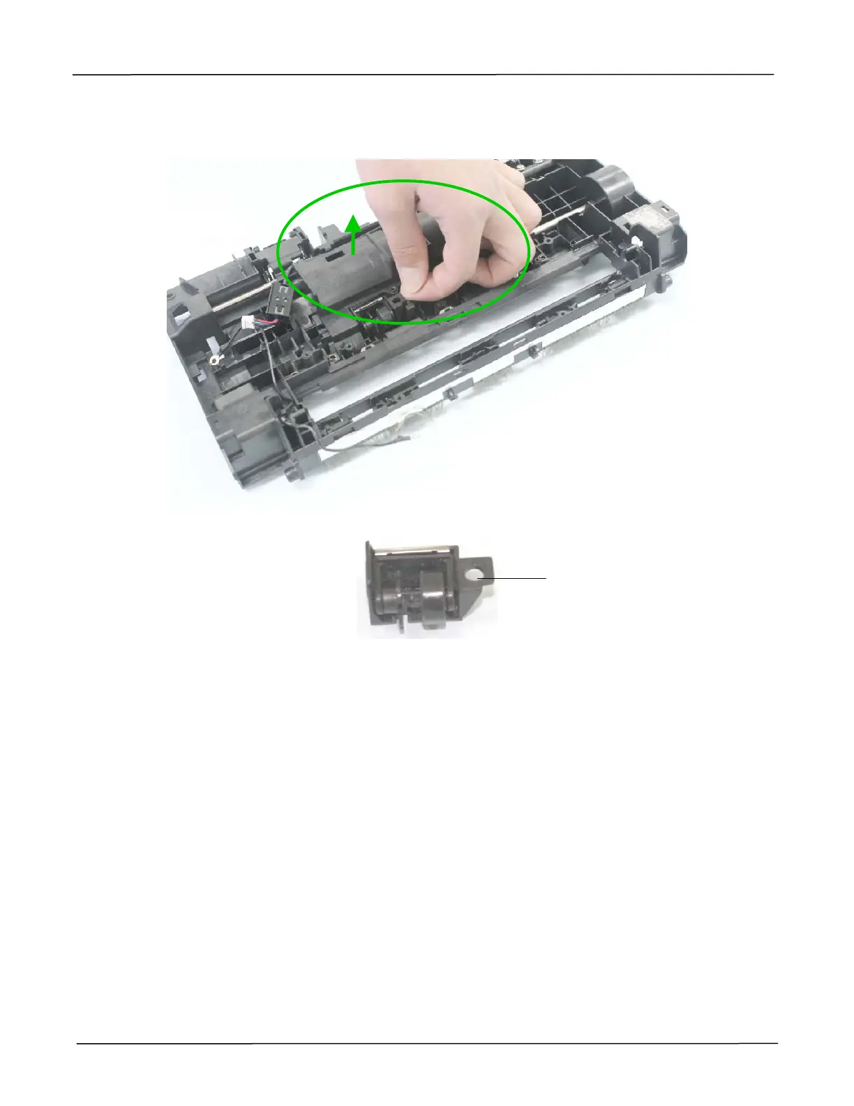 5. Remove the jam sensor on the upper base, as indicated below: