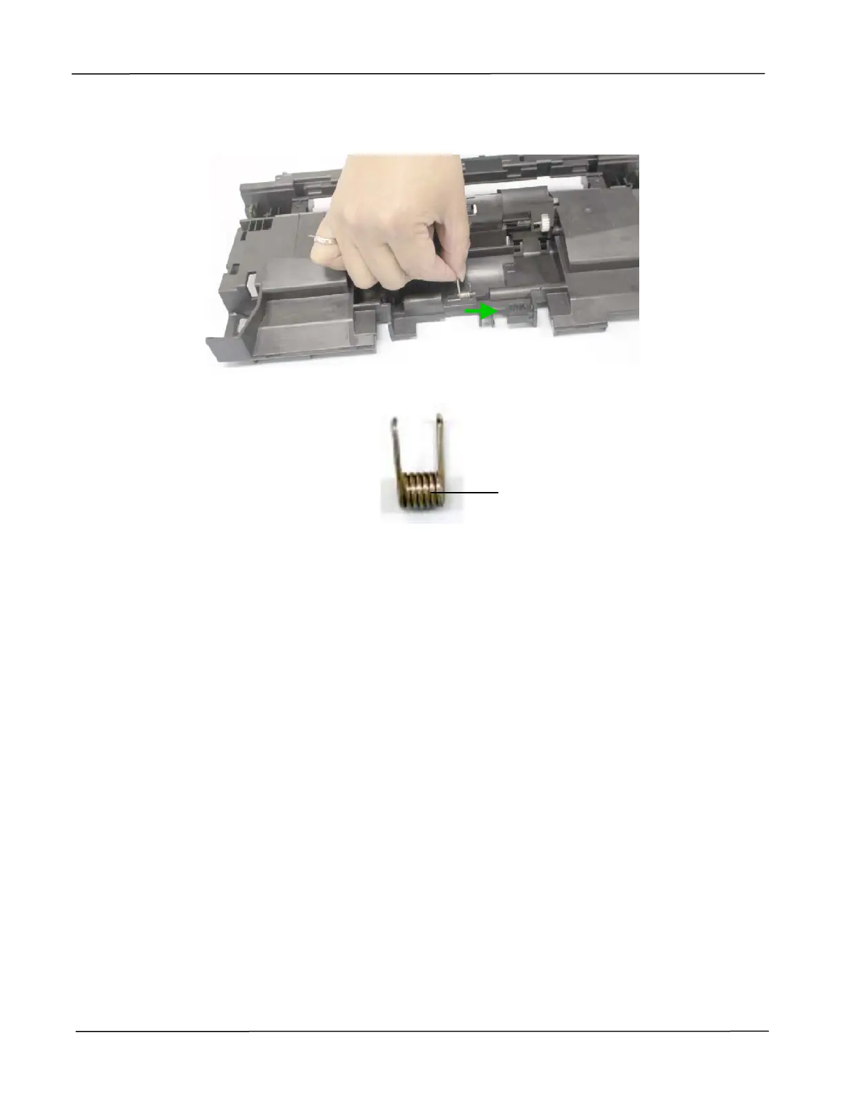 4. Push the spring to the right, and remove the spring from the slot on the upper base, as shown