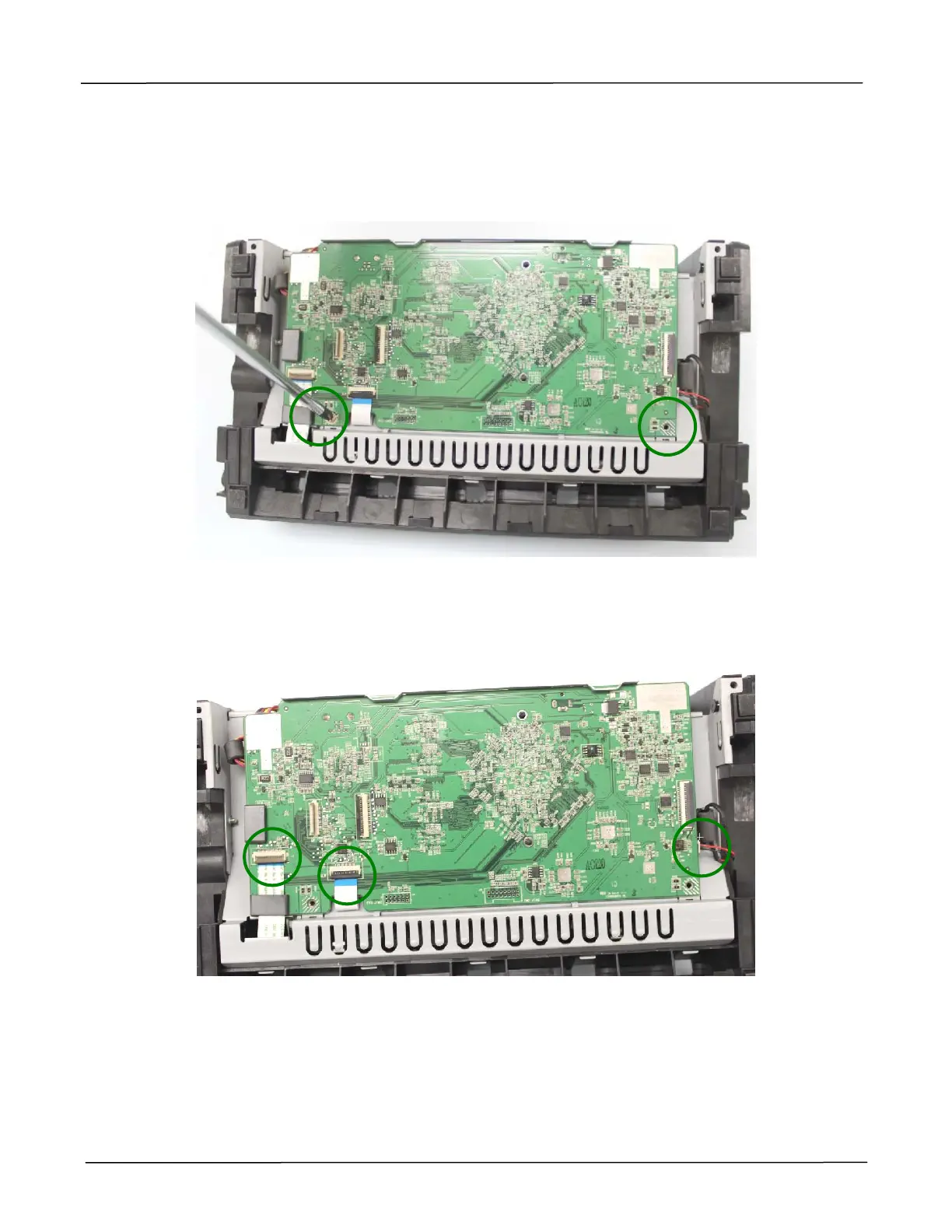 2. Remove 2 fixing screws on the main board, as indicated below: